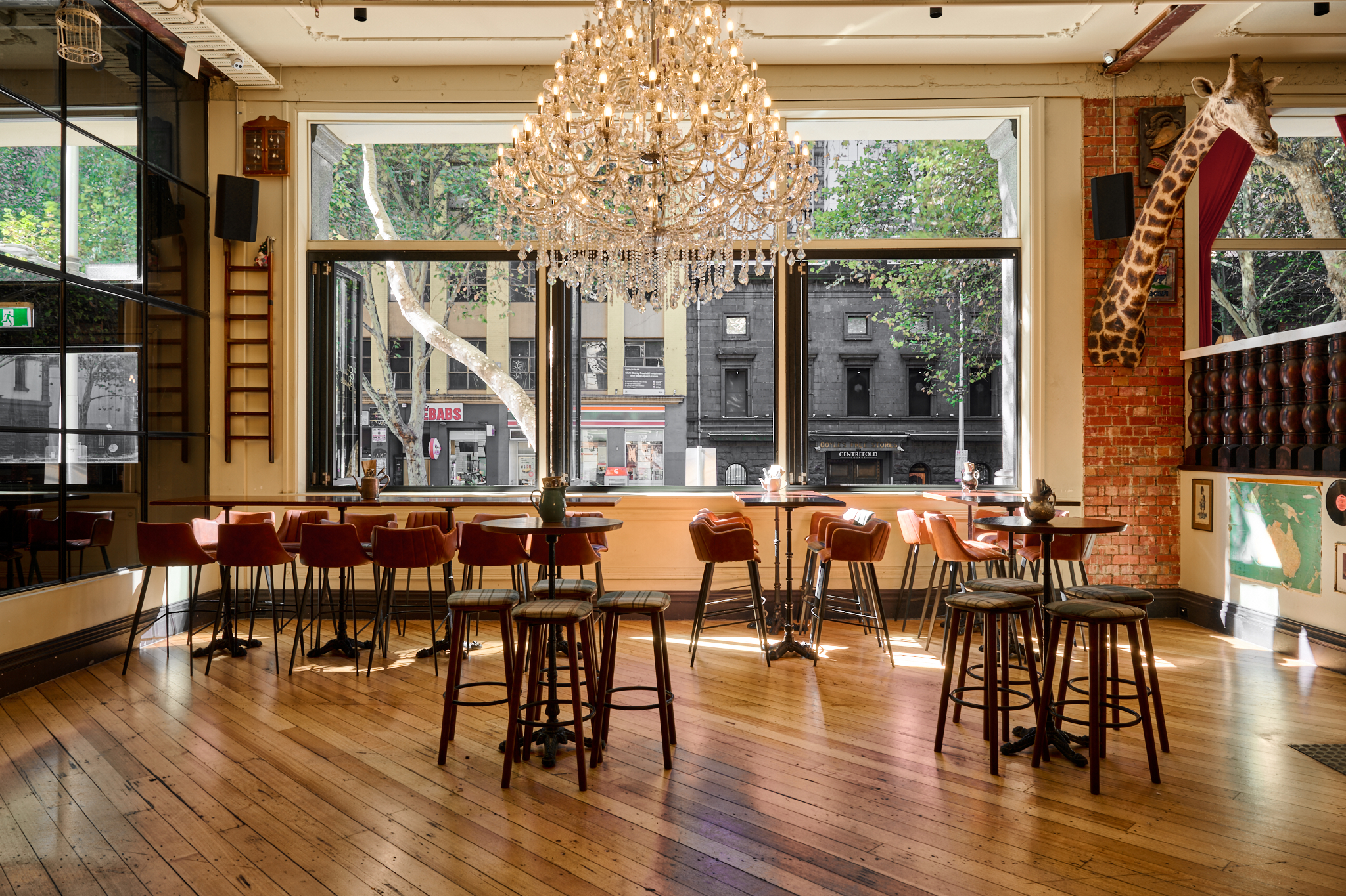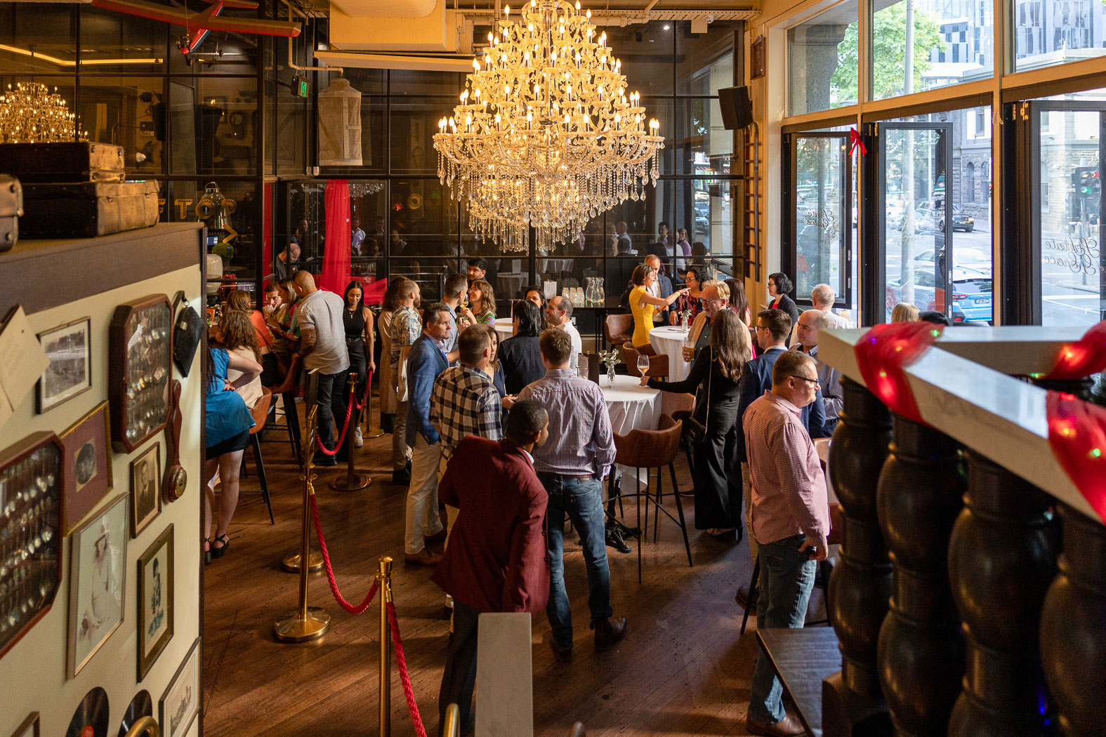 Enjoy premium beverages & canapés in the street level bar under the sparkling chandeliers. With ceiling high windows that span across the room, with a view onto bustling King St, this space has it all. Perfect for your next cocktail affair, with direct bar access and a uniquely presented space.