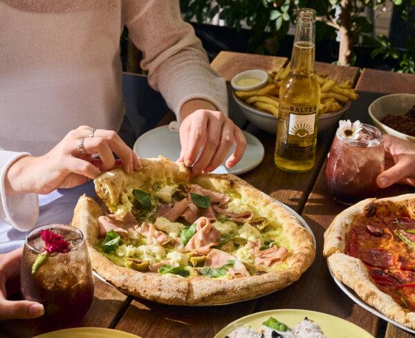 Up here, things are a little different – think sourdough pizzas, seasonal share plates and signature cocktails.