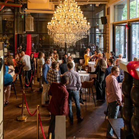 Enjoy premium beverages & canapés in the street level bar under sparkling chandeliers. With ceiling high windows that span across the room and a view onto bustling King St, this space has it all. Perfect for your next cocktail affair, with direct bar access and a uniquely presented space.